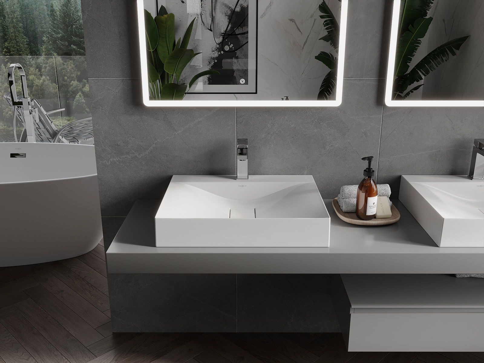 Mexen Poli lavabo à poser en conglomérat 1/O 60 x 48 cm, blanc - 23026001