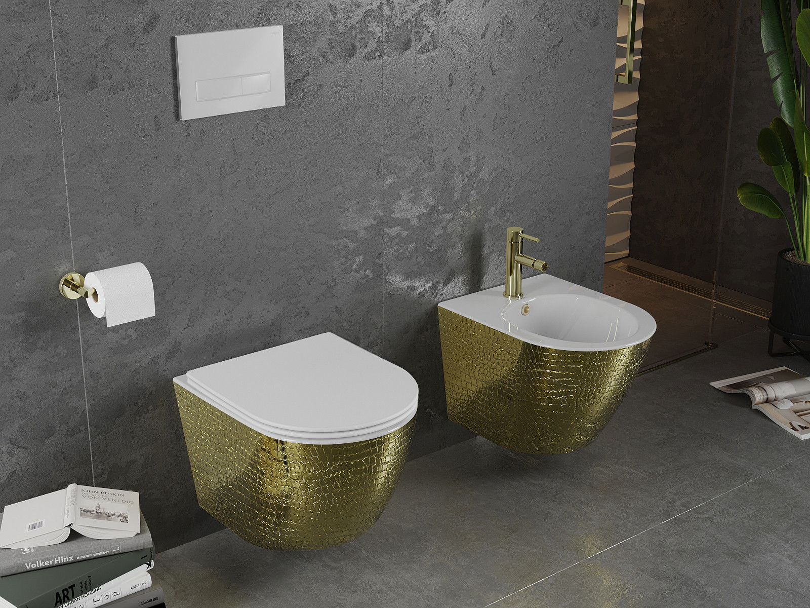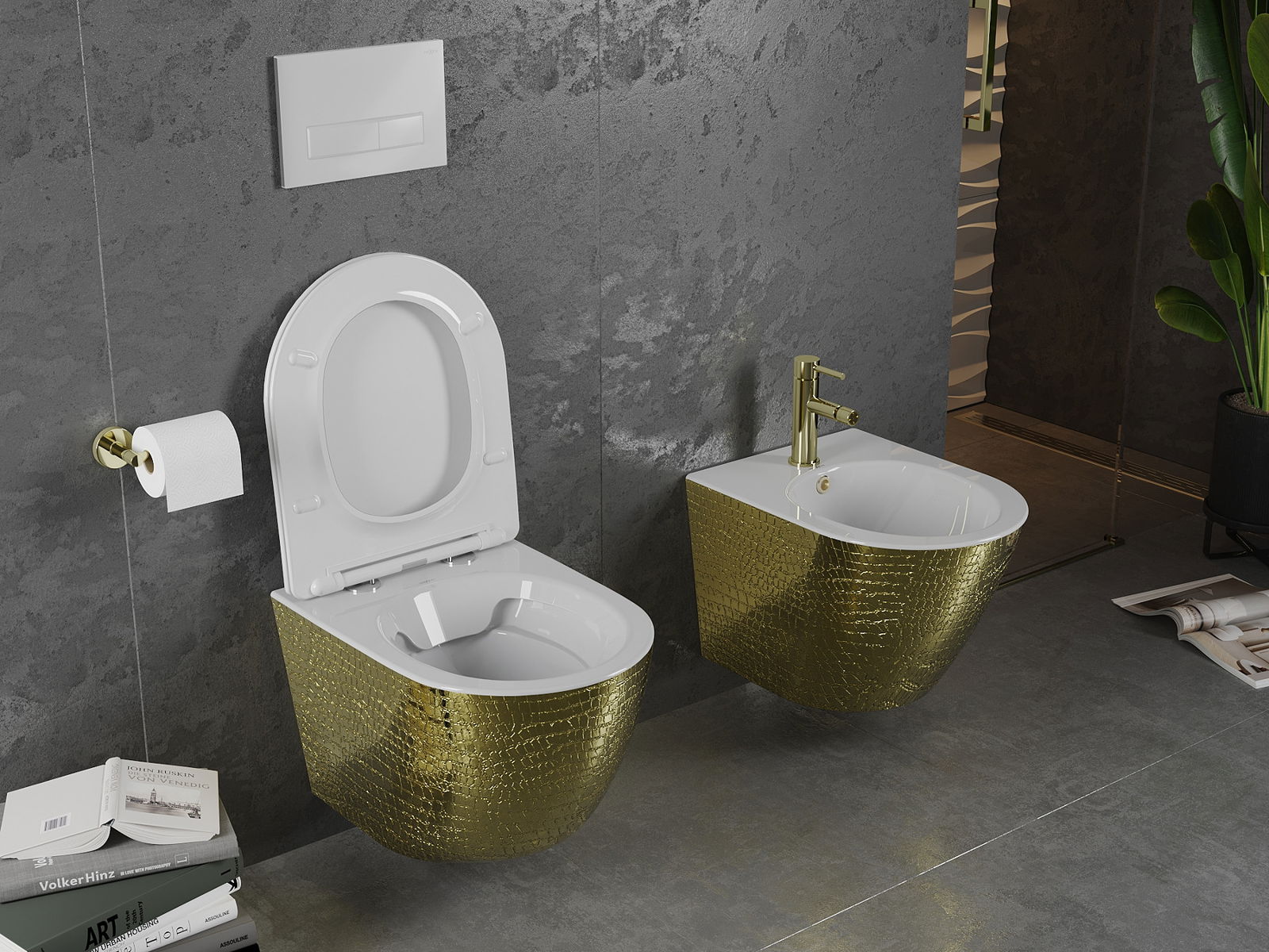 Mexen Lena cuvette WC Rimless avec abattant à descente lente slim, duroplast, blanc/or motif écailles - 30224008