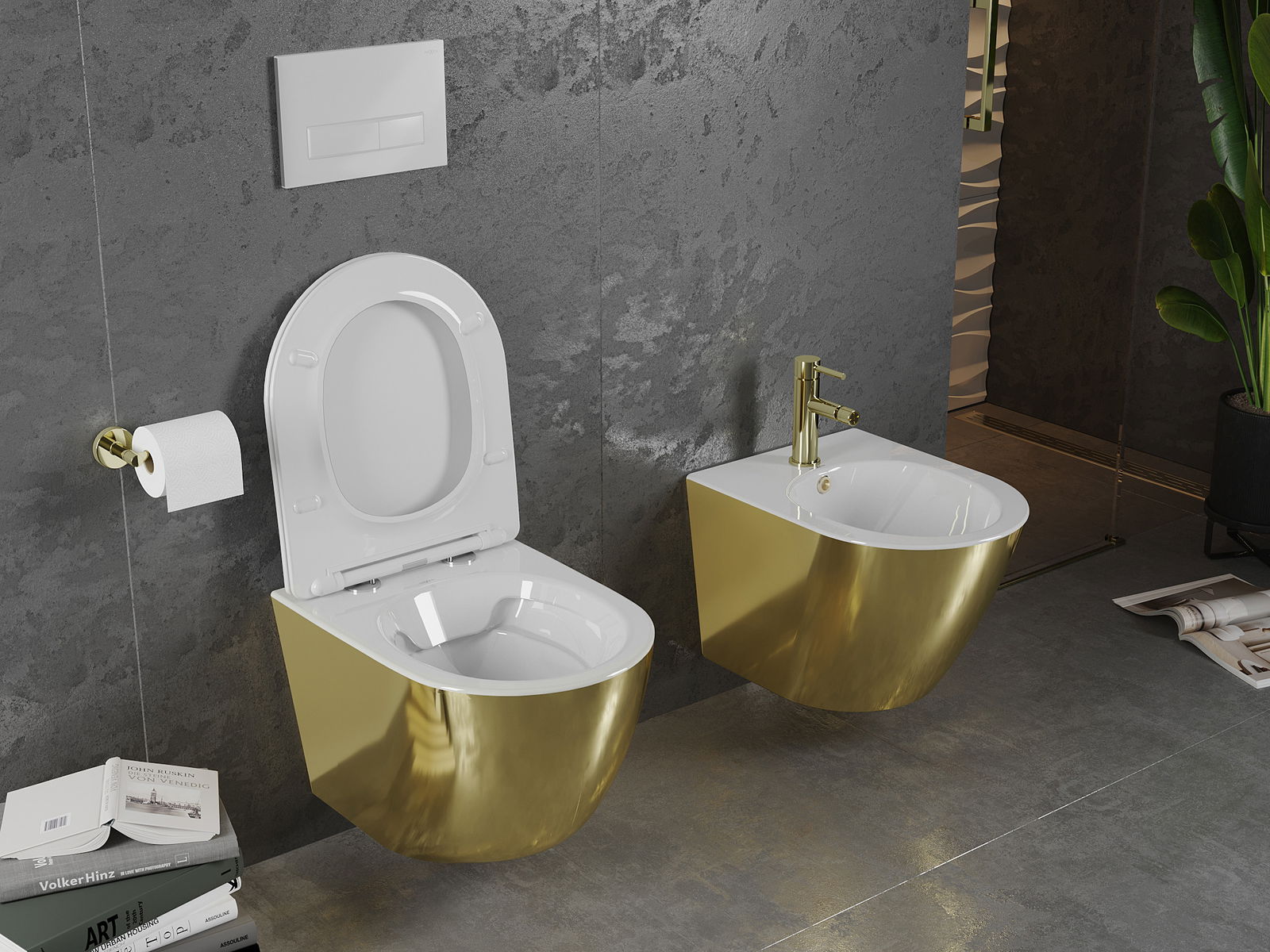 Mexen Lena cuvette WC sans rebord avec abattant à fermeture lente slim, duroplast, blanc/or - 30224006