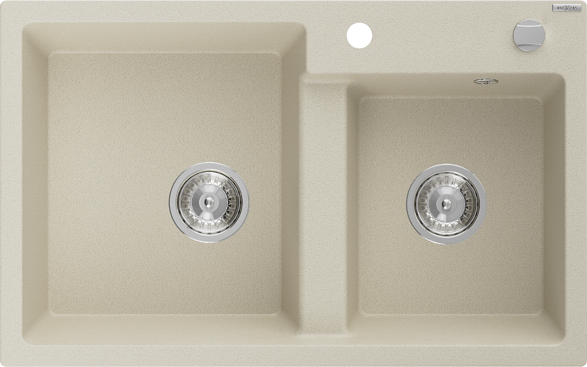 Mexen Tomas évier en granit à 2 bacs 800 x 500 mm, beige, siphon chromé - 6516802000-69