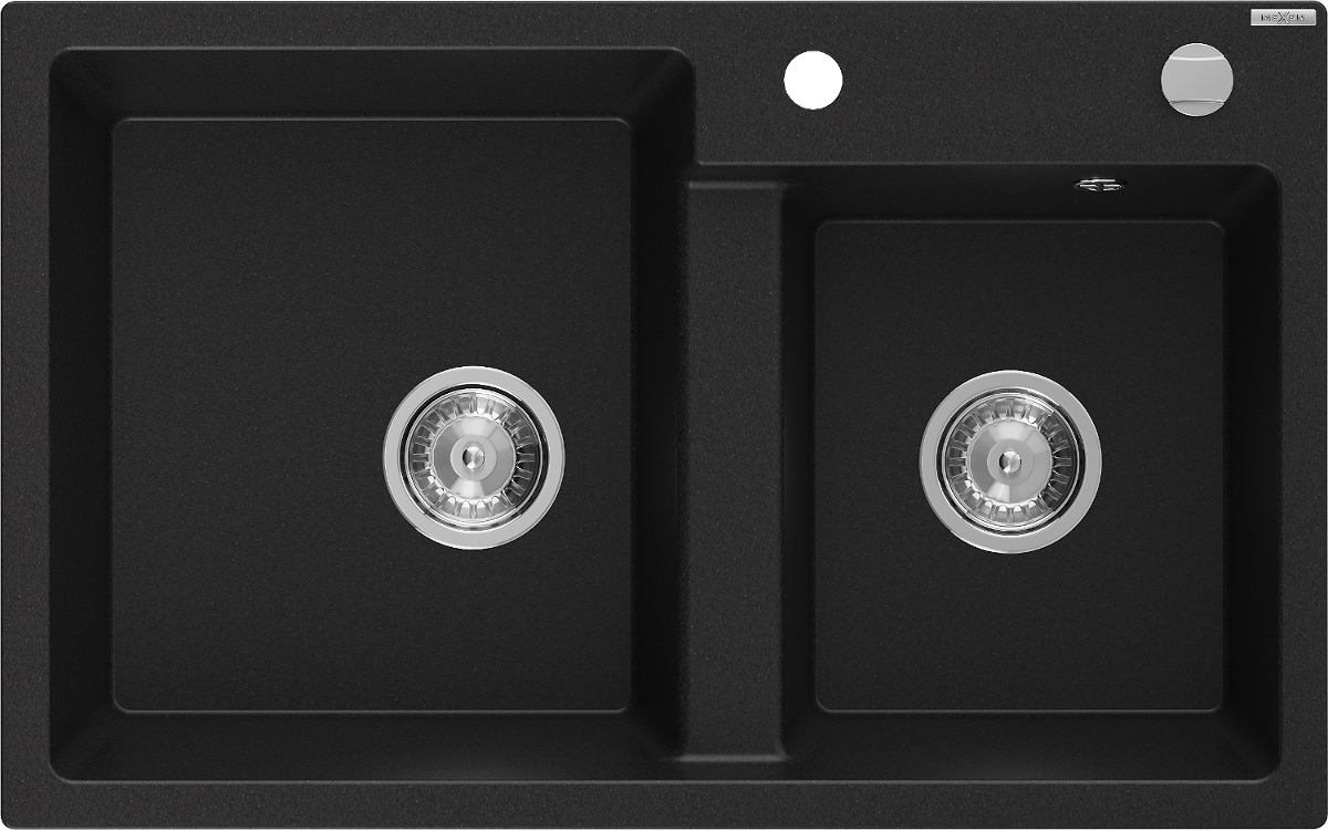 Mexen Tomas évier de cuisine en granit à 2 bacs 800 x 500 mm, noir, siphon chromé - 6516802000-77
