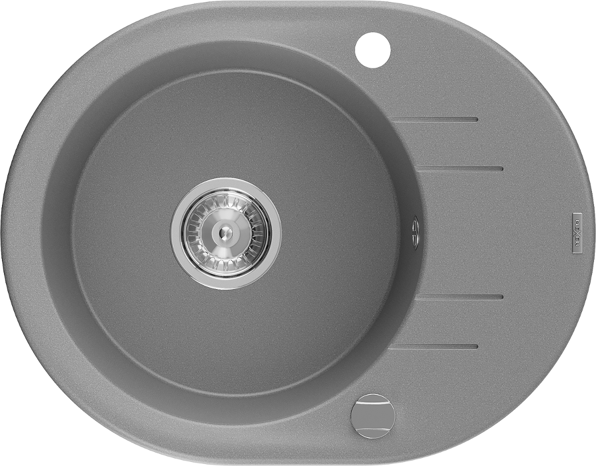 Mexen Kevin évier en granit à 1 bac avec égouttoir 586 x 458 mm, gris, siphon chromé - 6517581005-71