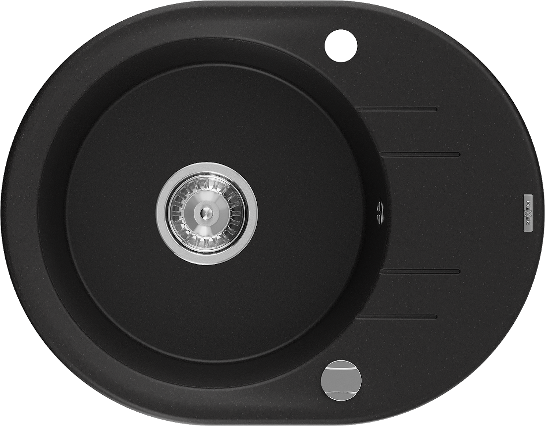 Mexen Kevin évier en granit à 1 bac avec égouttoir 586 x 458 mm, noir, siphon chromé - 6517581005-77