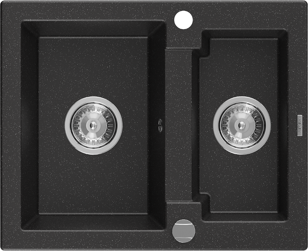 Mexen Carlos évier en granit 1,5 bac 582 x 475 mm, noir/argent métallisé, siphon chromé - 6518581500-73