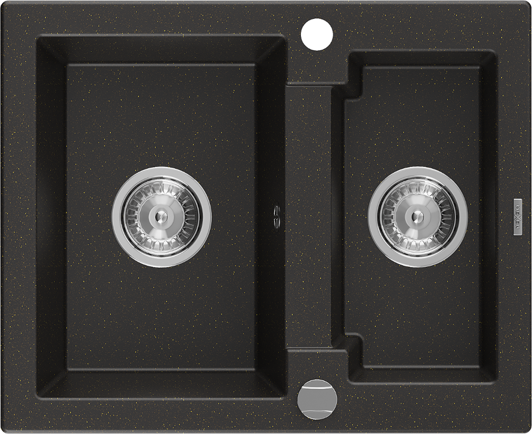 Mexen Carlos évier en granit 1,5 bac 582 x 475 mm, noir/or métallique, siphon chrome - 6518581500-75