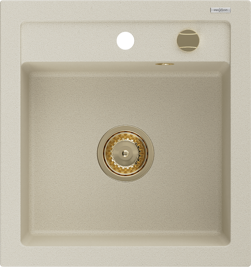 Mexen Vito évier en granit à 1 bac 520 x 490 mm, beige, siphon doré - 6503521000-69-G