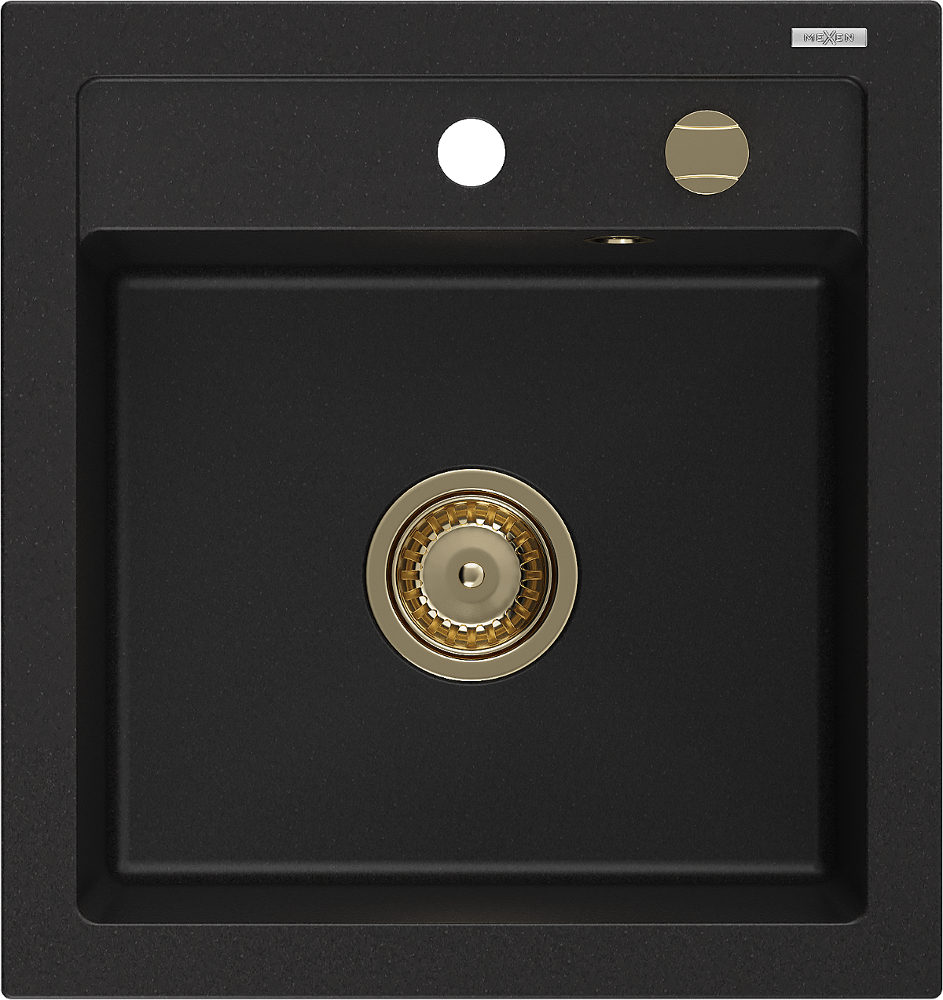 Mexen Vito évier en granit 1 bac 520 x 490 mm, noir, siphon doré - 6503521000-77-G