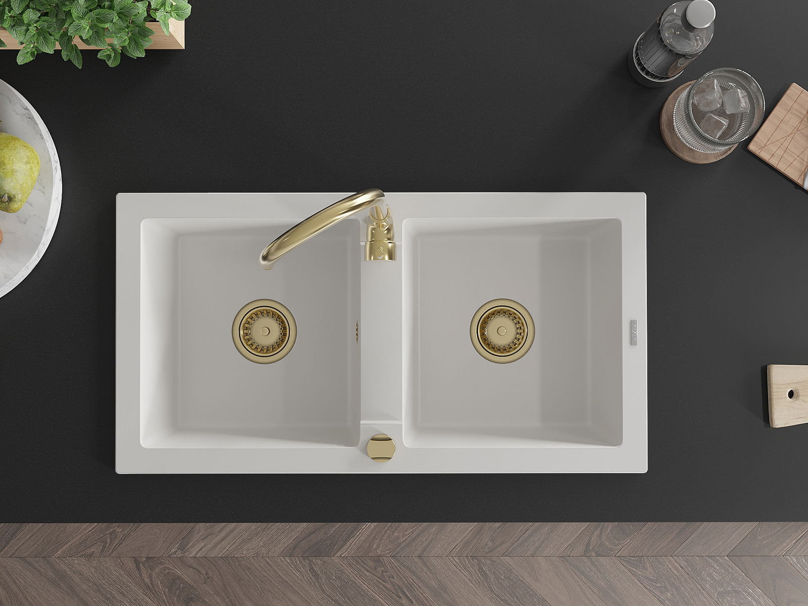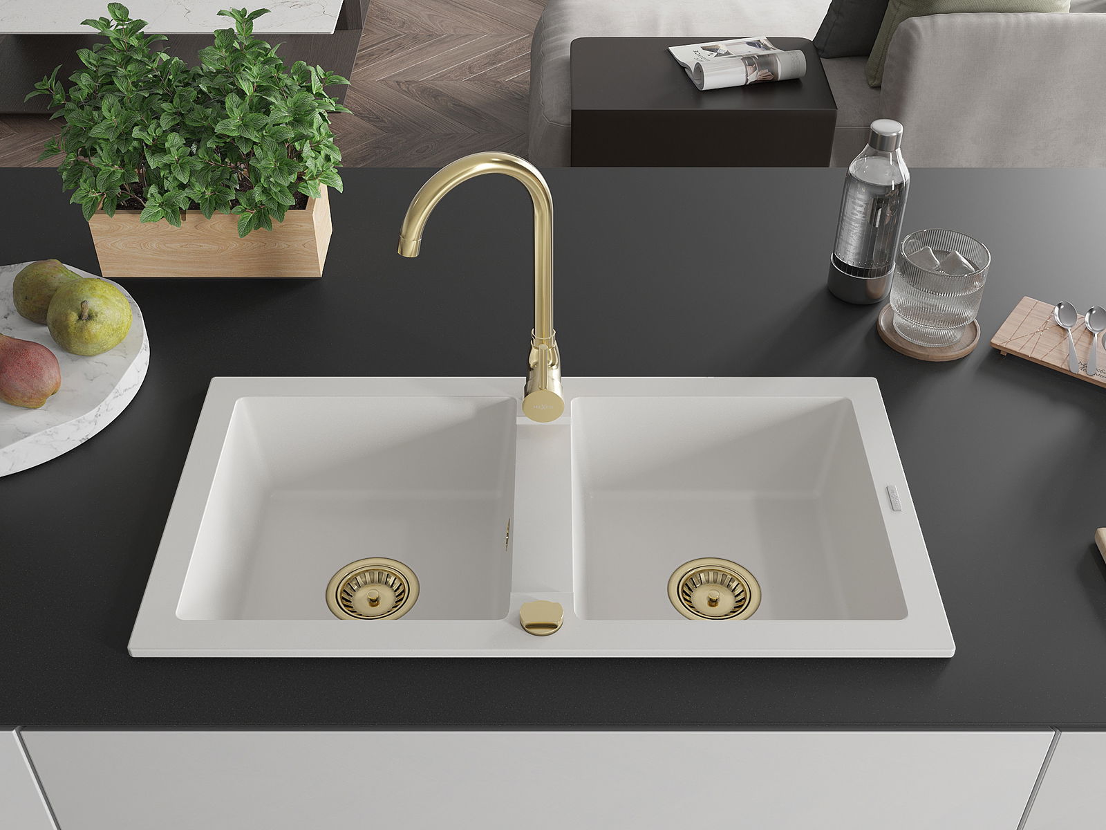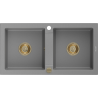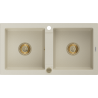 Mexen Mario évier en granit à 2 bacs 820 x 436 mm, blanc, siphon doré - 6504822000-20-G