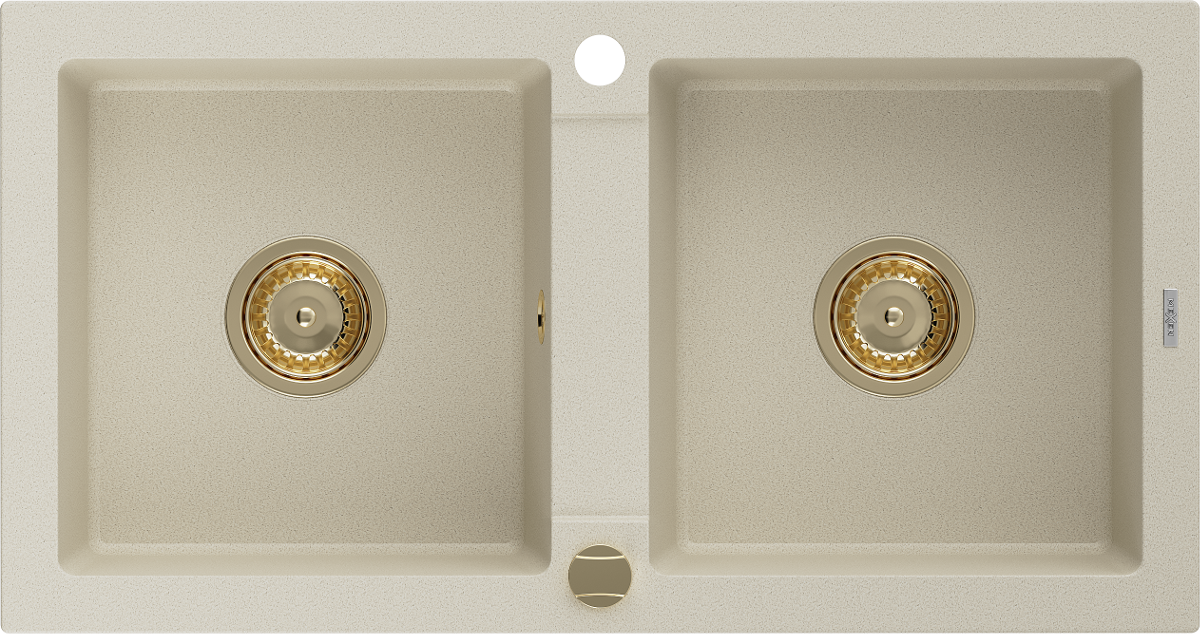 Mexen Mario évier en granit 2 bacs 820 x 436 mm, beige, siphon doré - 6504822000-69-G