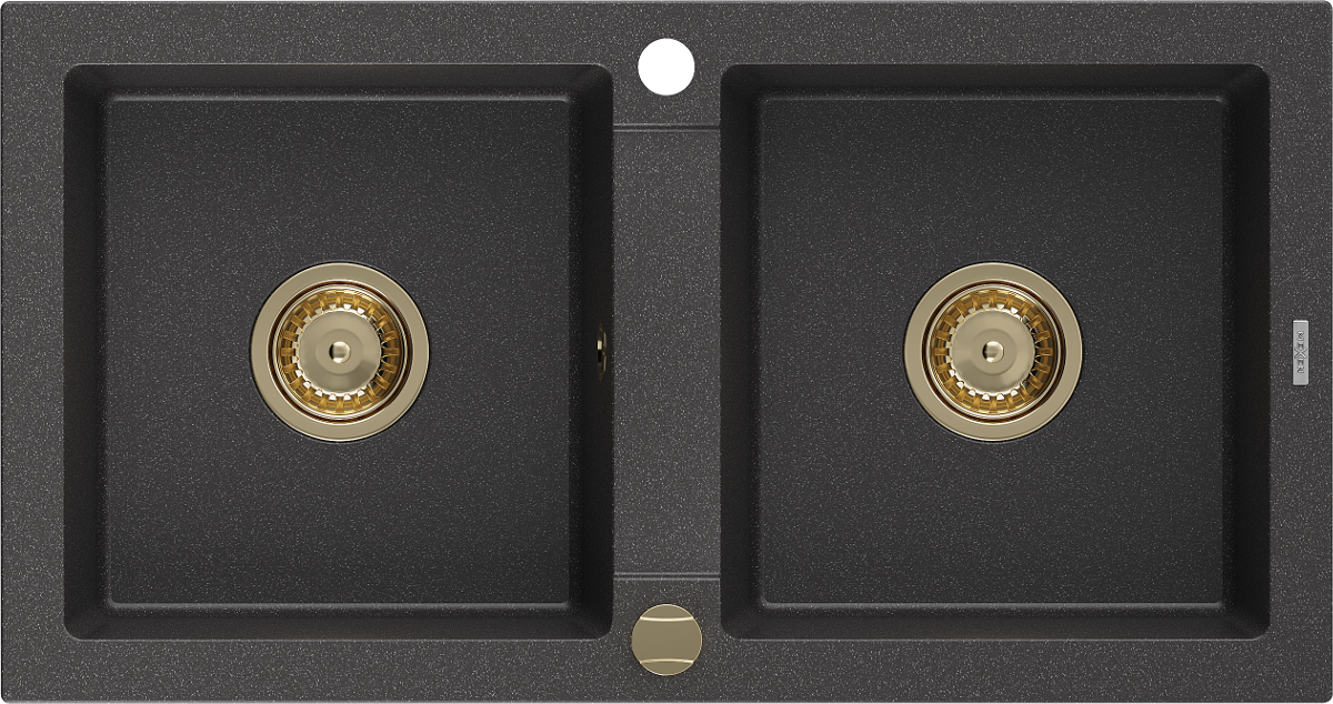 Mexen Mario évier en granit à 2 bacs 820 x 436 mm, noir moucheté, siphon doré - 6504822000-76-G
