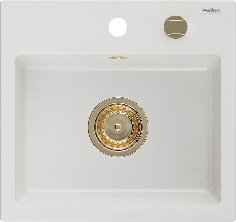 Mexen Milo évier en granit 1 bac 435 x 410 mm, blanc, siphon doré - 6505441000-20-G
