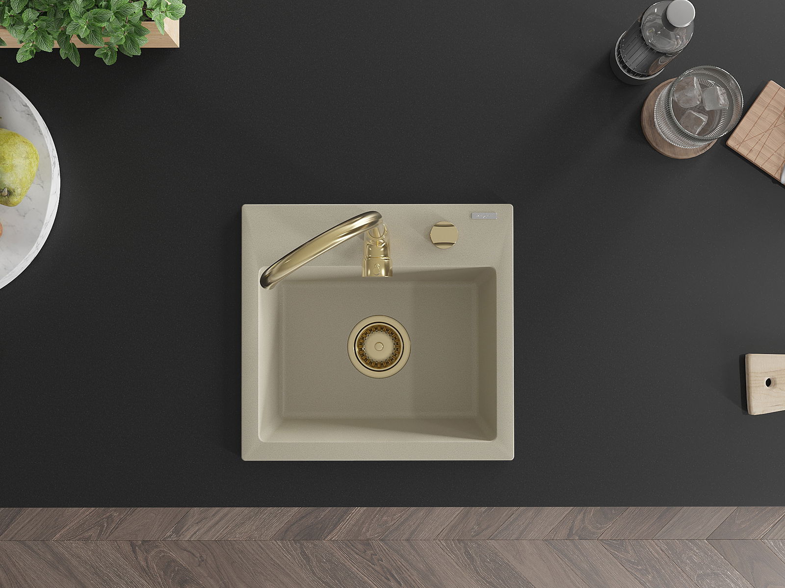 Mexen Milo évier en granit 1 bac 435 x 410 mm, beige, siphon doré - 6505441000-69-G
