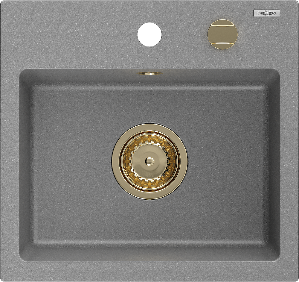 Mexen Milo évier en granit 1 bac 435 x 410 mm, gris, siphon doré - 6505441000-71-G
