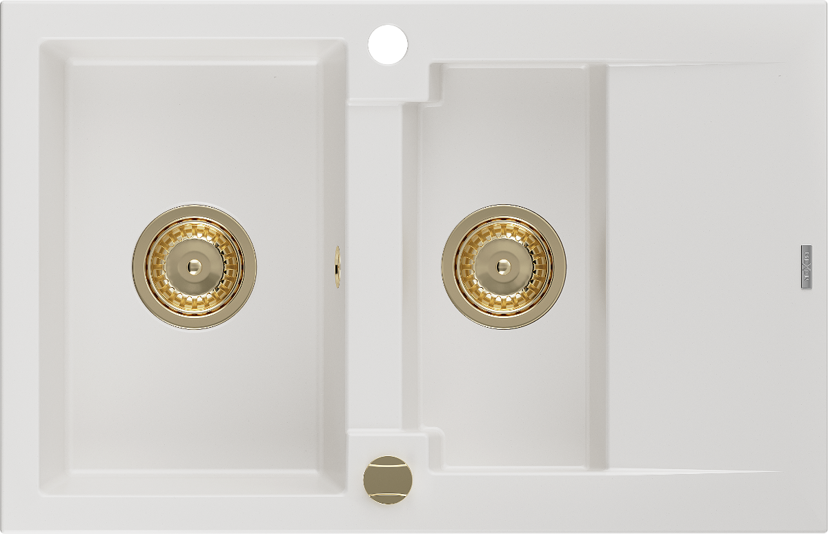 Mexen Gaspar évier en granit 1,5 bac avec drain 737 x 475 mm, blanc, siphon doré - 6507731505-20-G