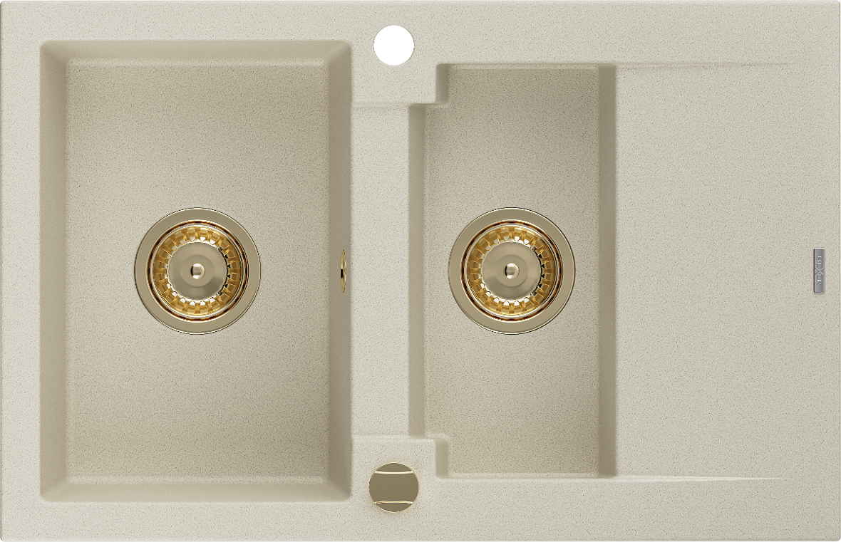 Mexen Gaspar évier en granit 1,5 bac avec égouttoir 737 x 475 mm, beige, siphon doré - 6507731505-69-G
