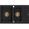 Mexen Gaspar évier granitique 1,5-bac avec égouttoir 737 x 475 mm, noir moucheté, siphon doré - 6507731505-76-G