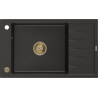 Mexen Elias évier en granit 1 bac avec égouttoir 795 x 480 mm, gris, siphon doré - 6511791005-71-G