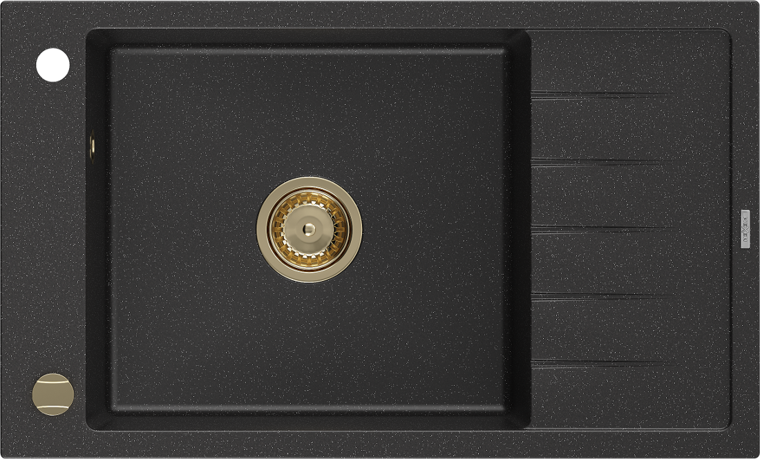 Mexen Elias évier en granit 1 cuve avec égouttoir 795 x 480 mm, noir/argent métallisé, siphon doré - 6511791005-73-G