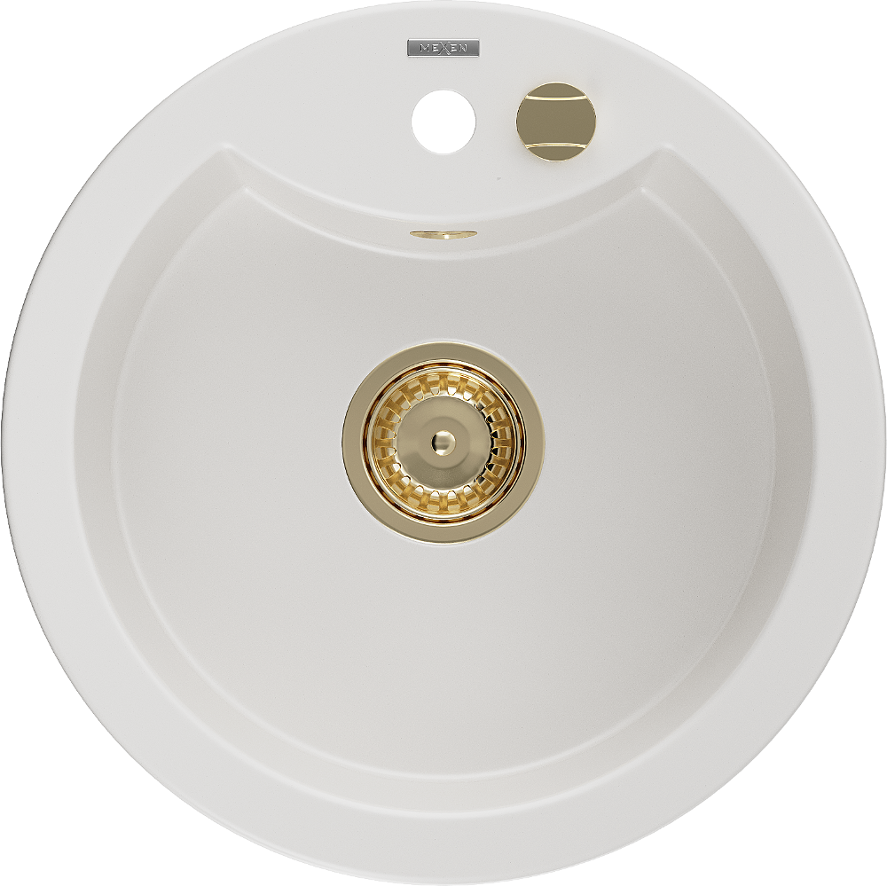 Mexen Diego évier en granit 1 bac 488 x 480 mm, blanc, siphon doré - 6512481000-20-G