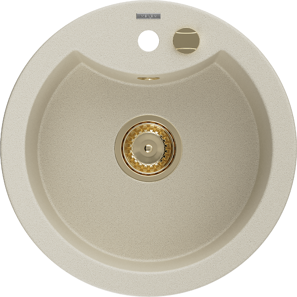 Mexen Diego évier en granit 1 bac 488 x 480 mm, beige, siphon doré - 6512481000-69-G