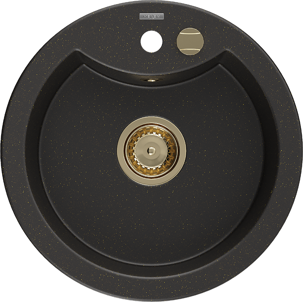 Mexen Diego évier en granit 1 bac 488 x 480 mm, noir/doré métallisé, siphon doré - 6512481000-75-G