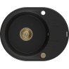 Mexen Kevin évier de cuisine en granit 1 bac avec égouttoir 586 x 458 mm, noir/argent métallique, siphon doré - 6517581005-73-G