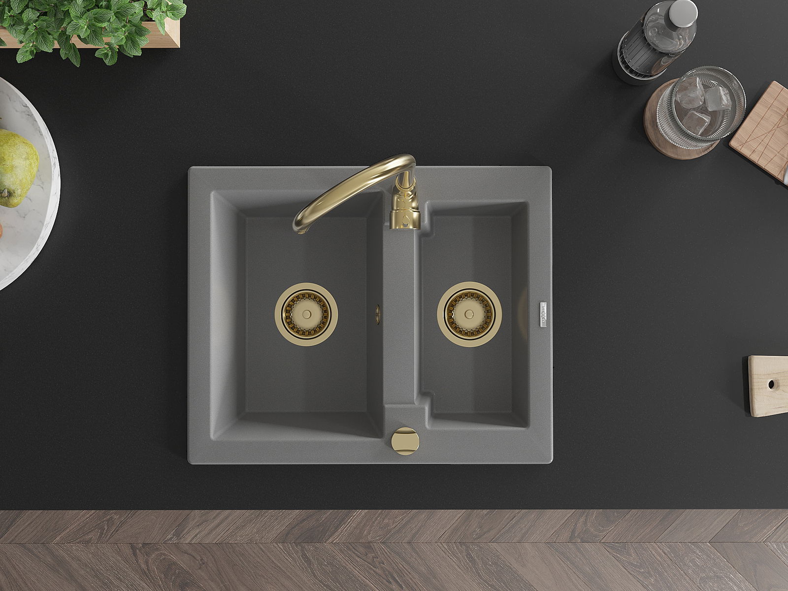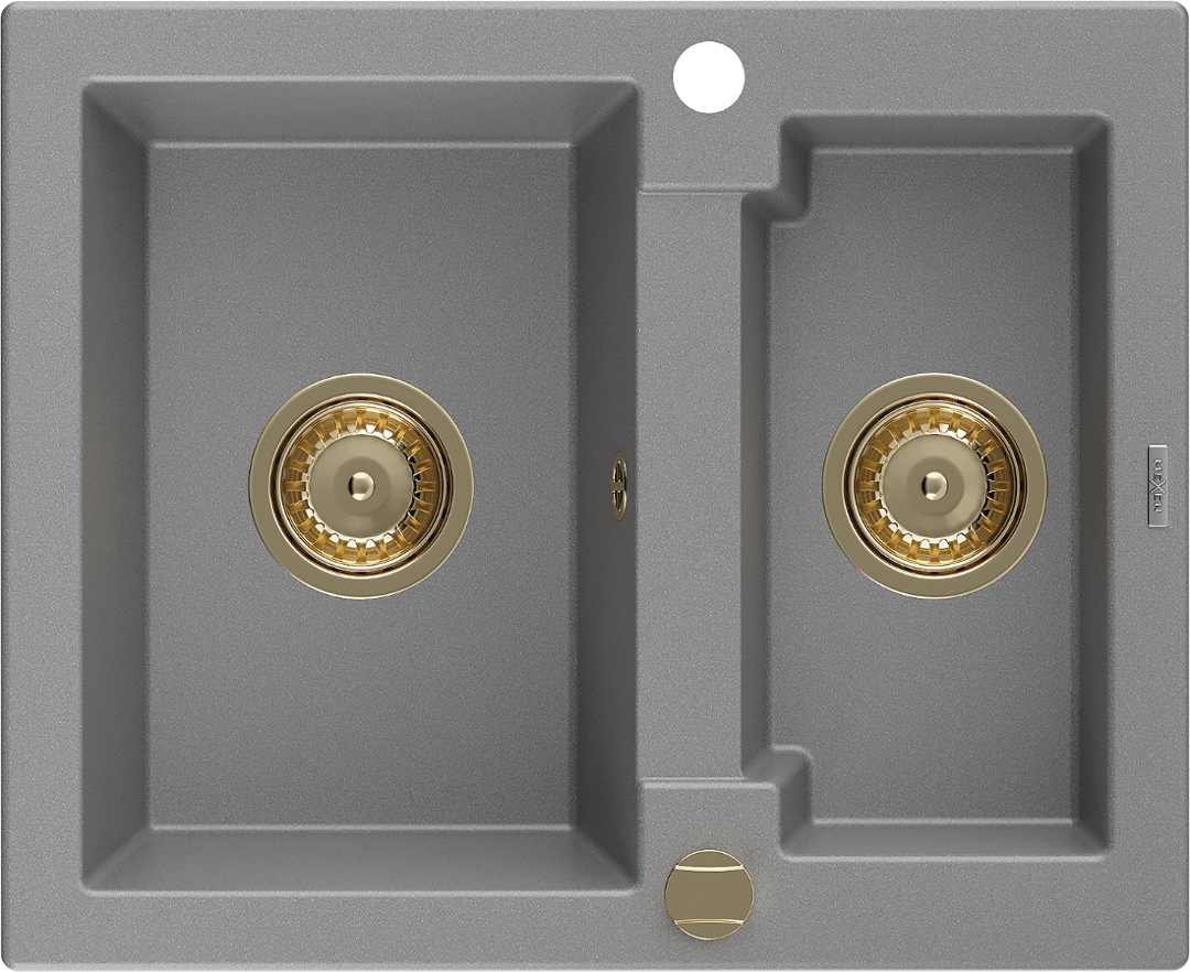 Mexen Carlos évier en granit 1,5 bac 582 x 475 mm, gris, siphon doré - 6518581500-71-G