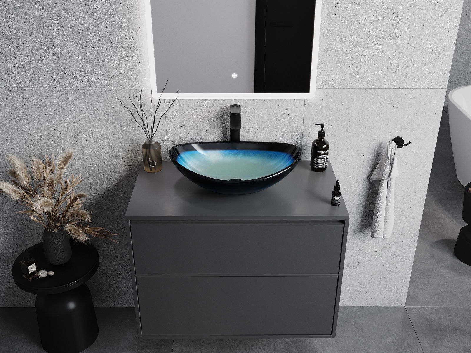 Mexen Sonia lavabo en verre posé sur comptoir 54 x 37 cm, bleu - 24145447