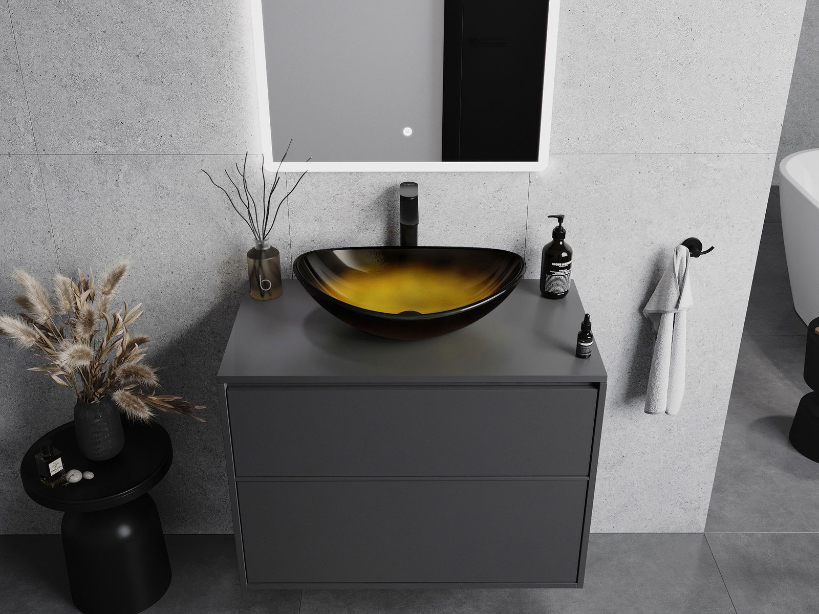 Mexen Sonia lavabo en verre à poser 54 x 37 cm, or foncé - 24145451