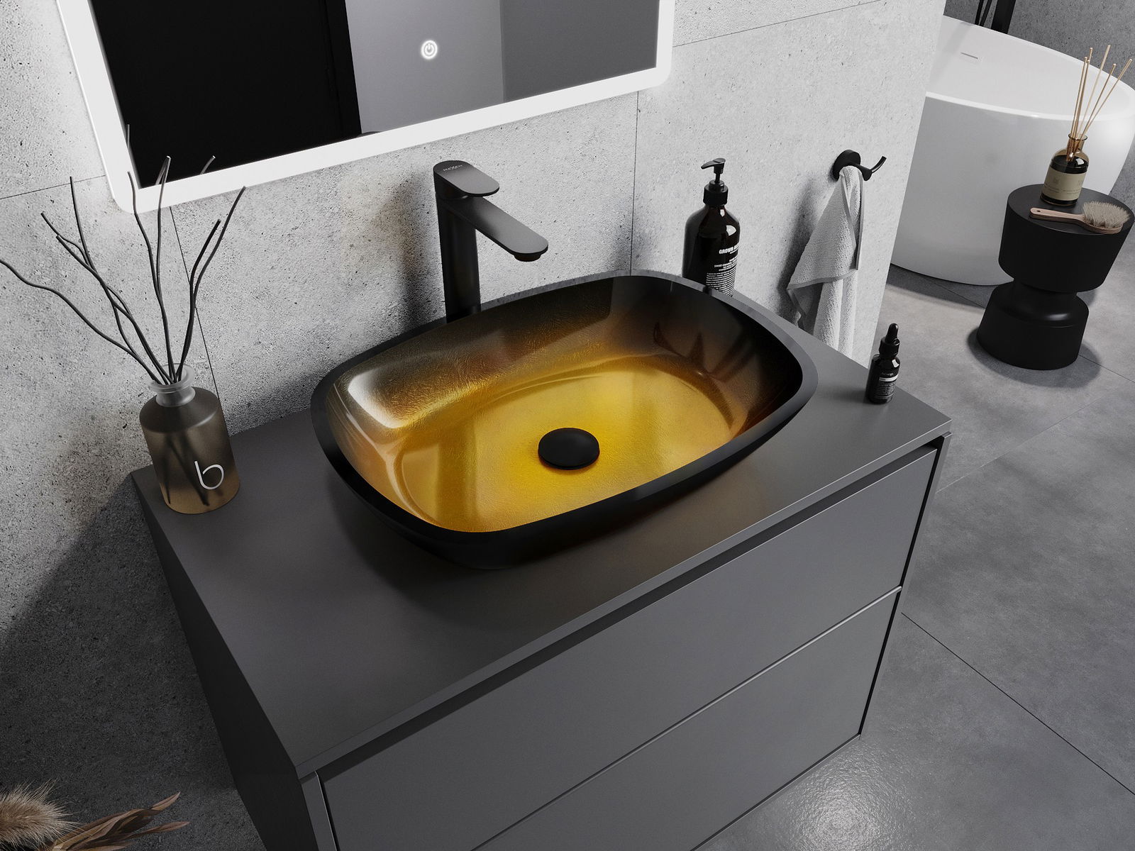 Mexen Araks lavabo en verre à poser 54 x 39 cm, or foncé - 24155451