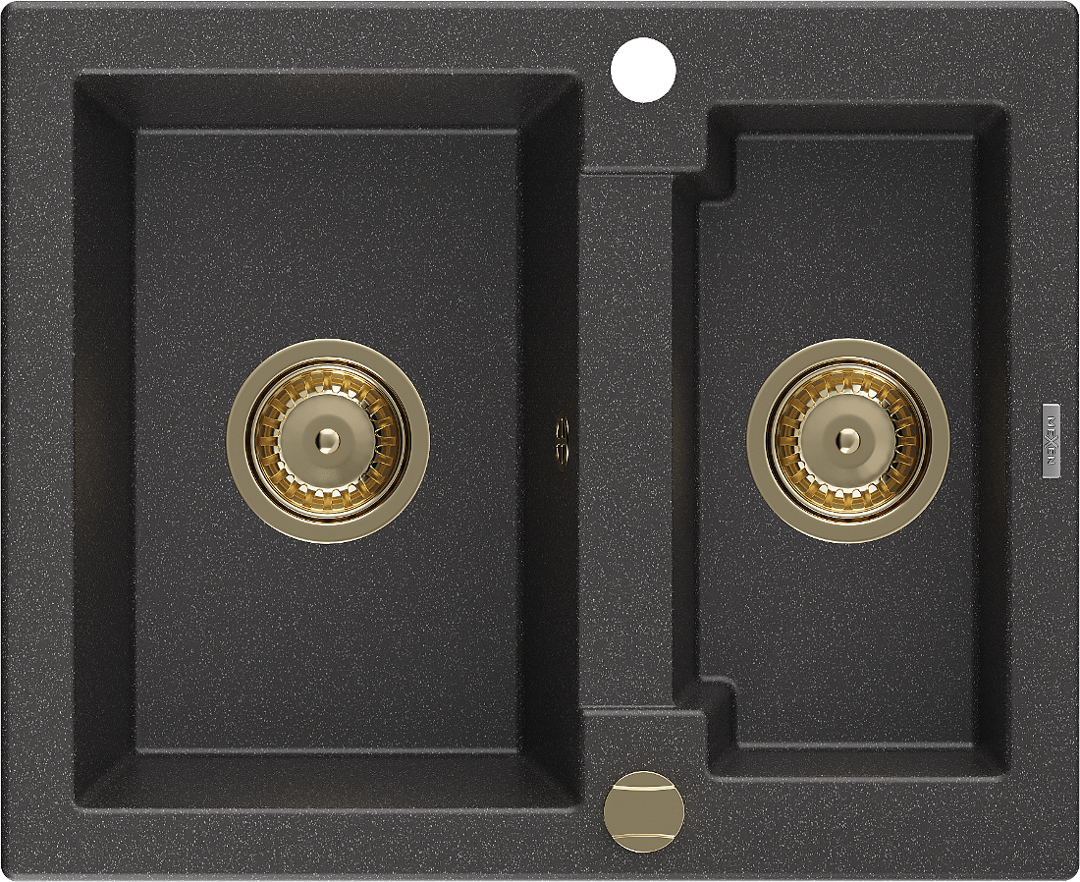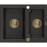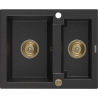 Mexen Carlos évier en granit 1,5 bac 582 x 475 mm, noir moucheté, siphon doré - 6518581500-76-G