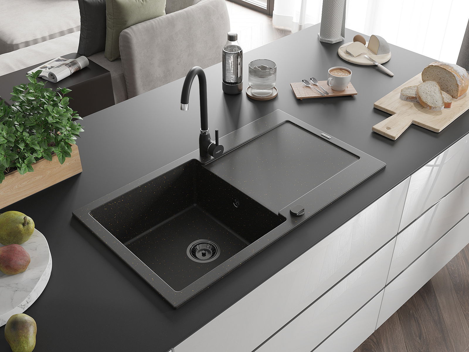 L'évier a été fabriqué en granit de haute qualité. Il constitue un complément élégant et surtout pratique à toute cuisine, quel que soit son style. La haute qualité et la durabilité du granit garantissent une utilisation pendant de nombreuses années.