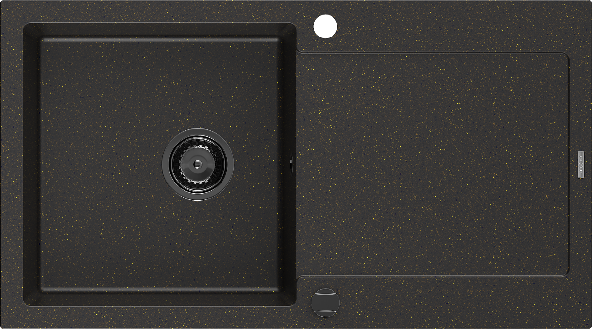 Mexen Leo évier en granit 1 bac avec égouttoir 900 x 500 mm, noir/doré métallisé, siphon noir - 6501901010-75-B