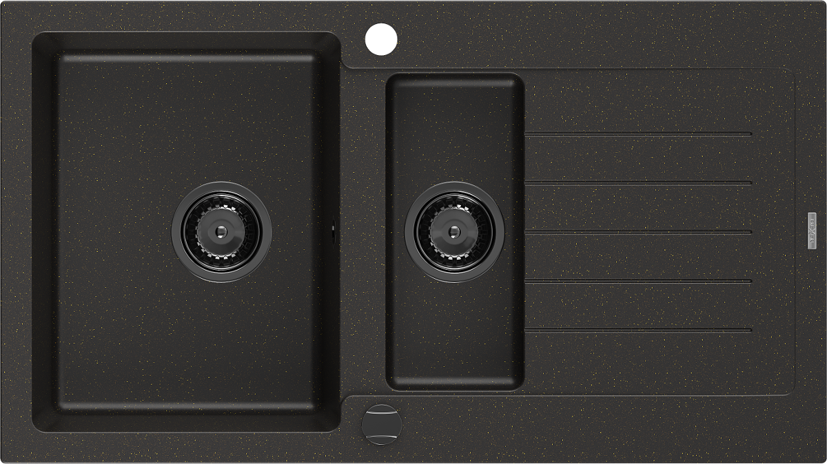 Mexen Matias évier en granit 1,5 bac avec égouttoir 900 x 505 mm, noir/doré métallique, siphon noir - 6502901505-75-B