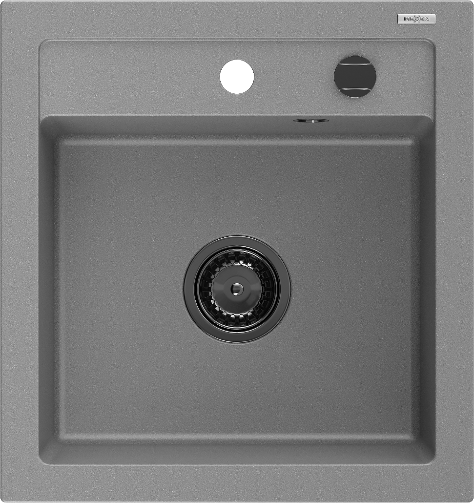 Mexen Vito évier en granit 1 bac 520 x 490 mm, gris, siphon noir - 6503521000-71-B