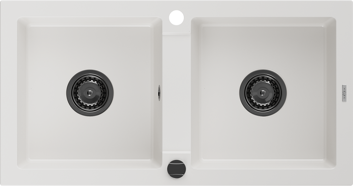 Mexen Mario évier en granit 2 compartiments 820 x 436 mm, blanc, siphon noir - 6504822000-20-B