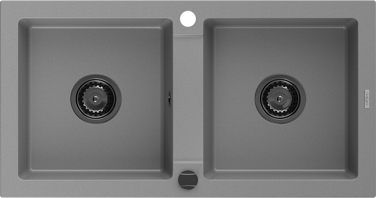 Mexen Mario évier en granit 2 bacs 820 x 436 mm, gris, siphon noir - 6504822000-71-B
