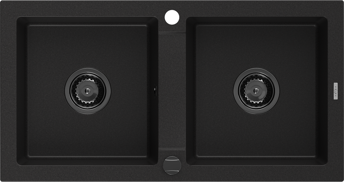 Mexen Mario évier en granit à 2 bacs 820 x 436 mm, noir, siphon noir - 6504822000-77-B