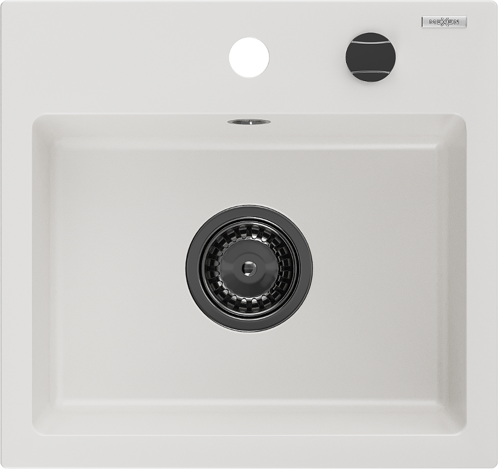 Mexen Milo évier en granit 1 bac 435 x 410 mm, blanc, siphon noir - 6505441000-20-B