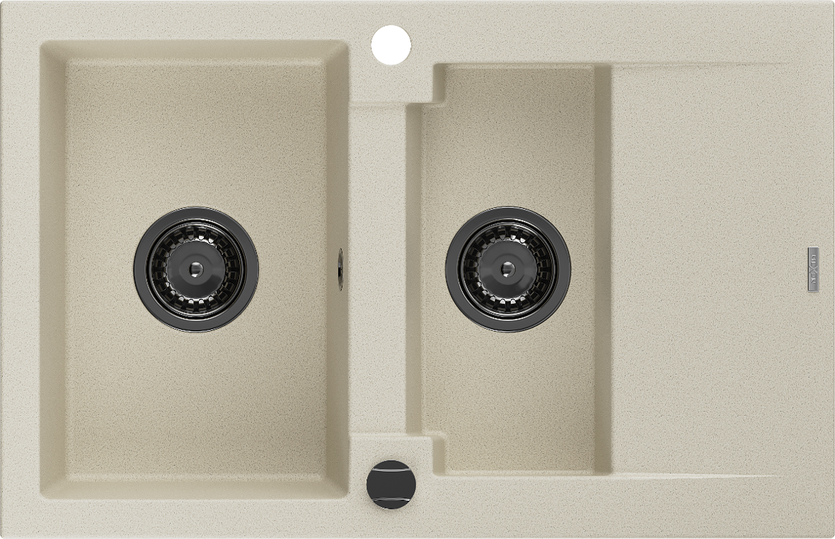 Mexen Gaspar évier en granit 1,5 bac avec égouttoir 737 x 475 mm, beige, siphon noir - 6507731505-69-B