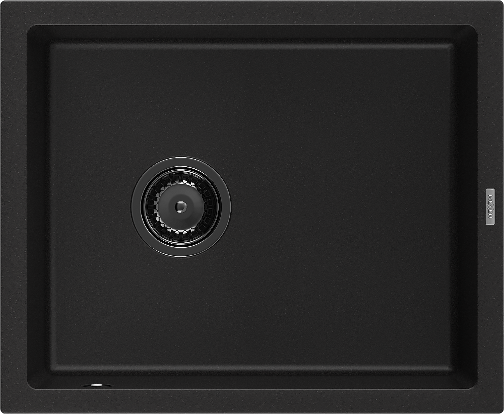 Mexen Pedro évier en granit à 1 bac 560 x 460 mm, noir, siphon noir - 6508561000-77-B