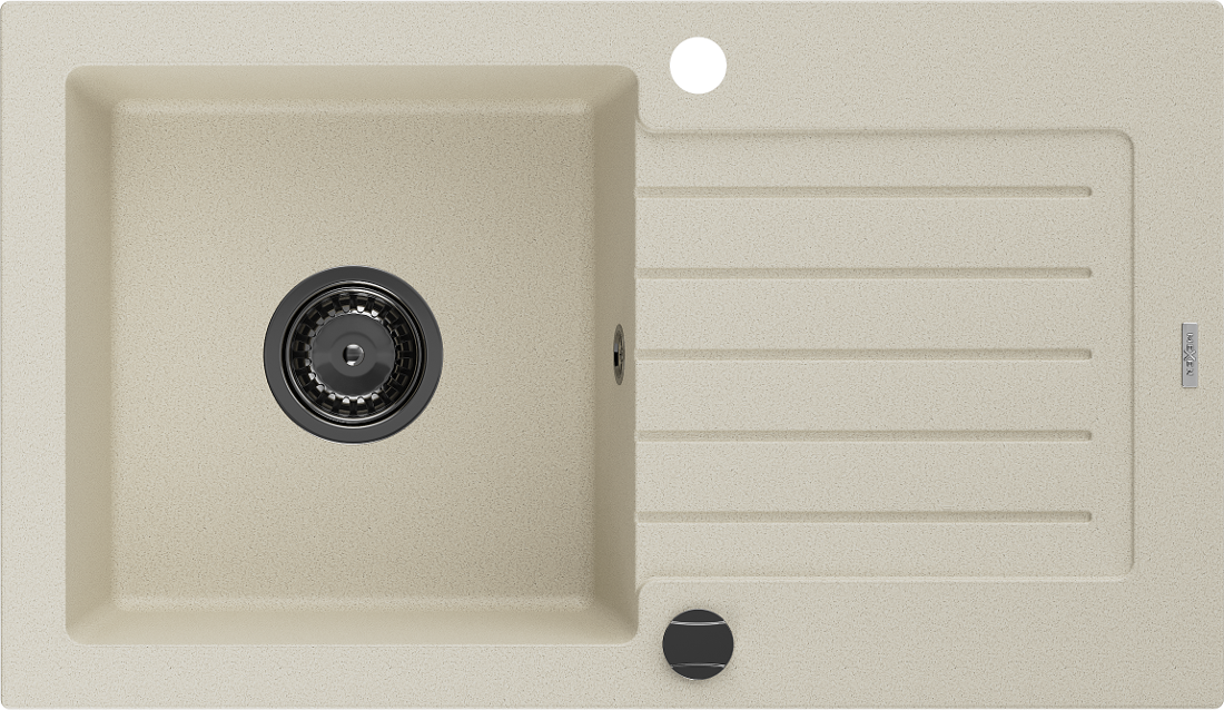 Mexen Pablo évier en granit 1-cuve avec égouttoir 752 x 436 mm, beige, siphon noir - 6510751010-69-B