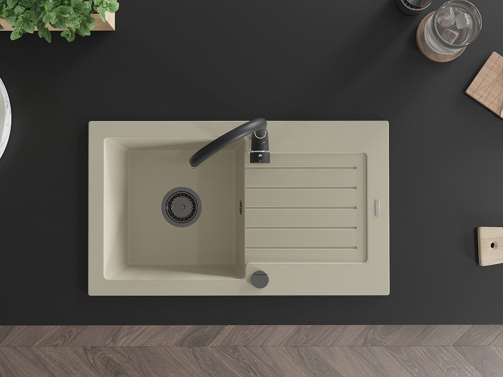 L'évier a été fabriqué en granit de haute qualité. Il constitue un complément élégant et surtout pratique à toute cuisine, quel que soit son style. La haute qualité et la durabilité du granit garantissent une utilisation pendant de nombreuses années.