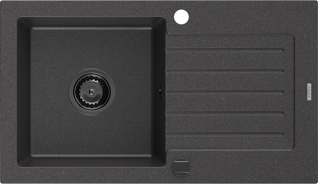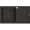 Mexen Pablo évier de cuisine en granit à 1 bac avec égouttoir 752 x 436 mm, noir moucheté, siphon noir - 6510751010-76-B