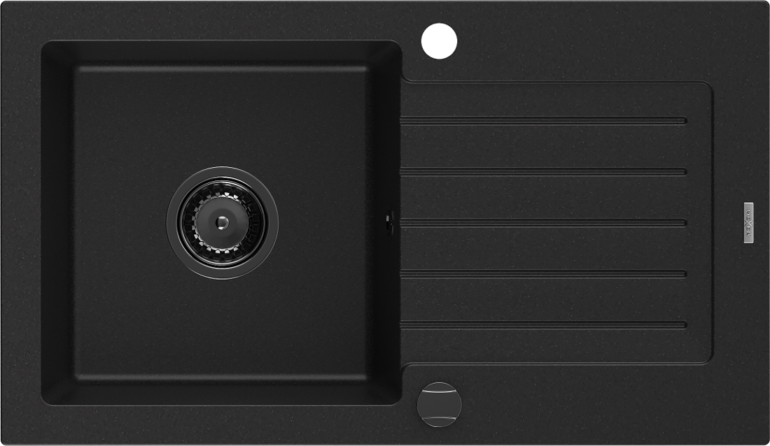 Mexen Pablo évier granit 1 bac avec égouttoir 752 x 436 mm, noir, siphon noir - 6510751010-77-B