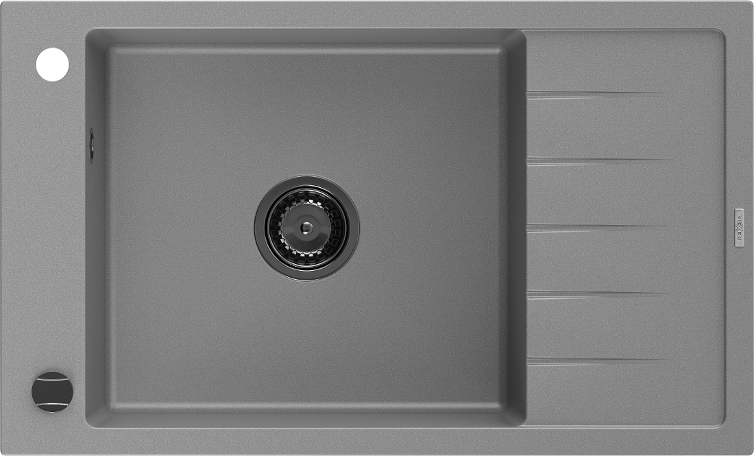 Mexen Elias évier en granit 1 bac avec égouttoir 795 x 480 mm, gris, siphon noir - 6511791005-71-B
