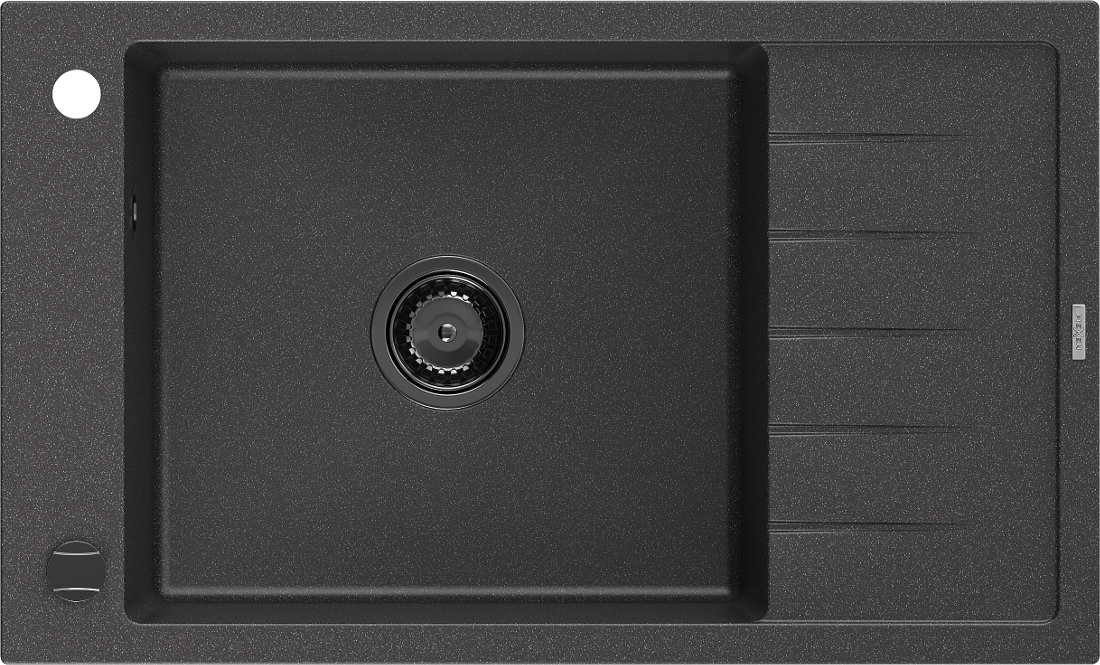 Mexen Elias évier en granit 1 bac avec égouttoir 795 x 480 mm, noir moucheté, siphon noir - 6511791005-76-B