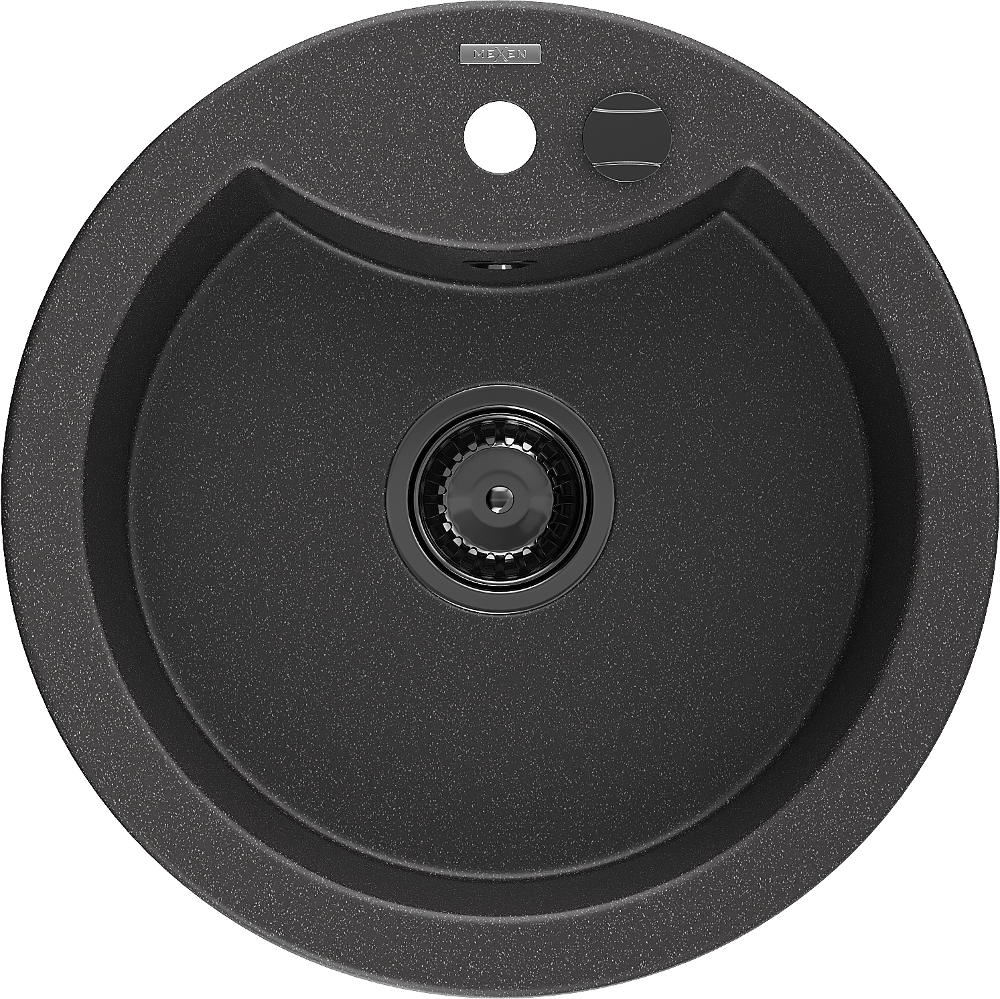 Mexen Diego évier en granit 1-bac 488 x 480 mm, noir moucheté, siphon noir - 6512481000-76-B