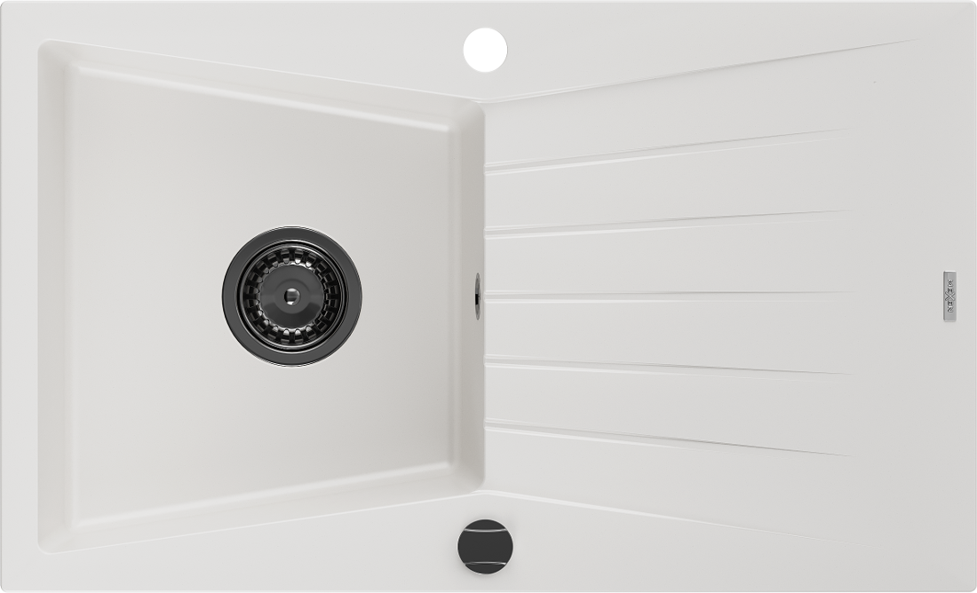 Mexen Cesar évier en granit à 1 bac avec égouttoir 775 x 470 mm, blanc, siphon noir - 6514771010-20-B