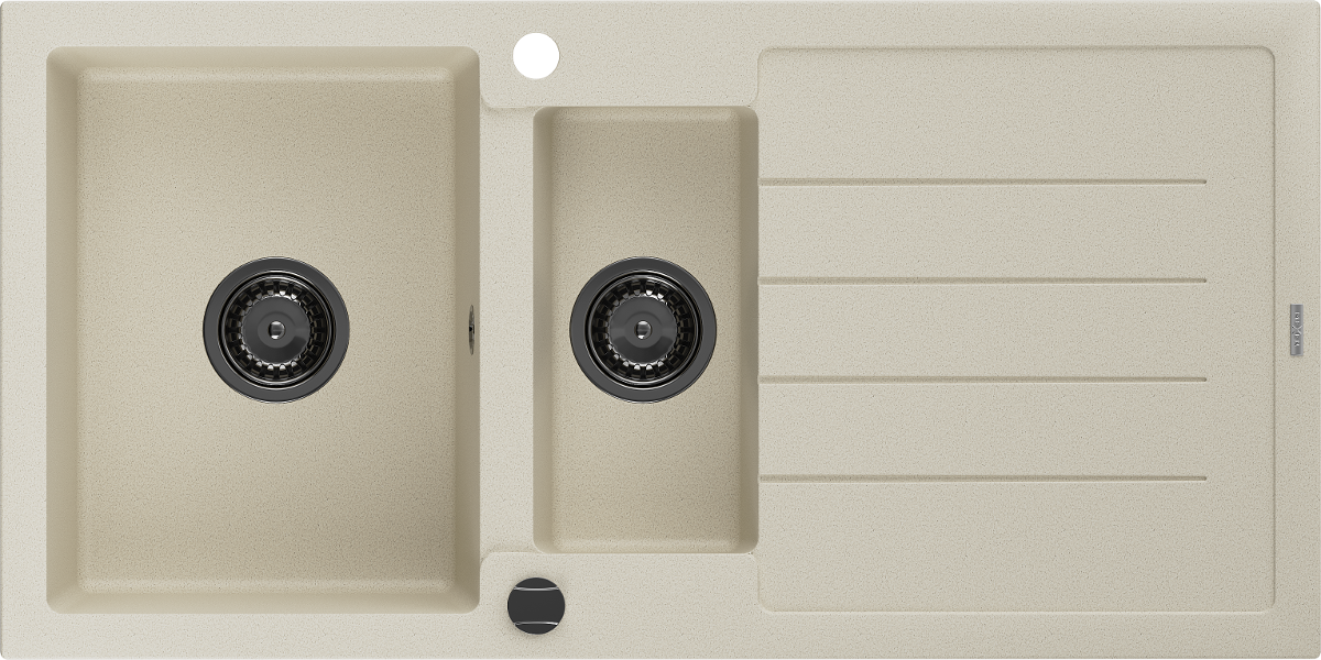 Mexen Andres évier en granit 1,5 bac avec égouttoir 1000 x 500 mm, beige, siphon noir - 6515101510-69-B
